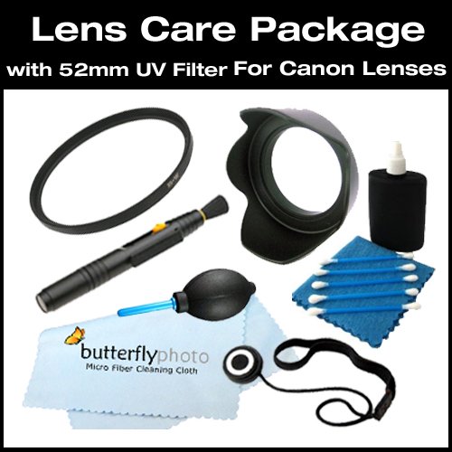 Lens Care Package With 52mm UV Filter and Lens Hood For