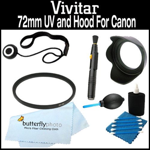 - Vivitar 77mm UV Filter and Lens Hood + Care Package For Canon Lenses