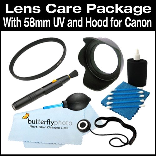 - Vivitar 58mm UV Filter and Lens Hood + Care Package For Canon Lenses