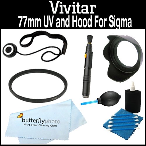 - Vivitar 77mm UV Filter and Lens Hood + Care Package For Sigma Lenses